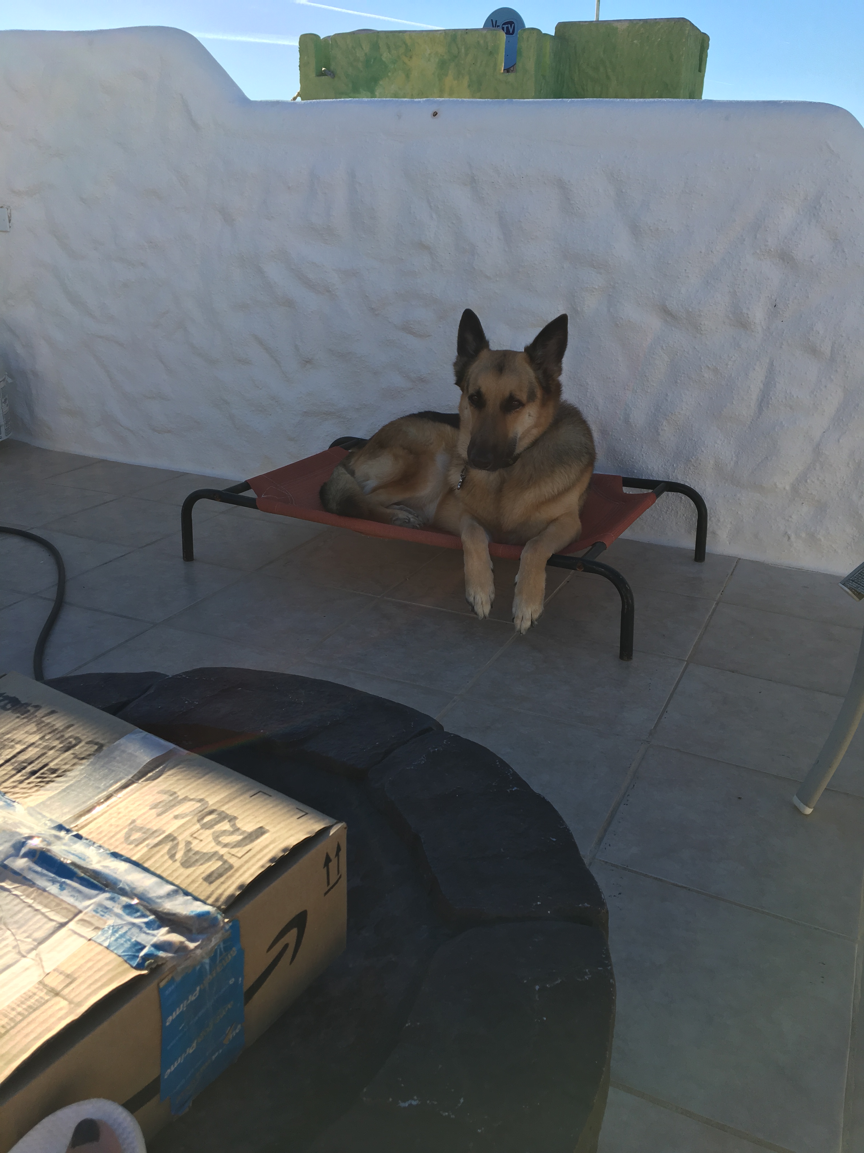 Kaiser resting on the floor beside meKaiser chilling on the roof top patio while I barbeque