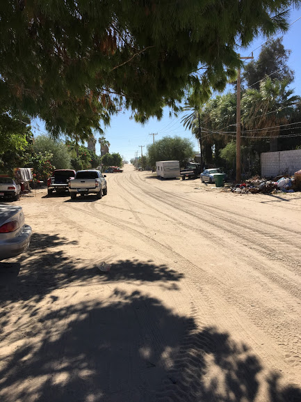 The weather is not hot but it is also not humid and the sun is bright and warms up the air every afternoon. The temperature is usually in the mid twenties in the afternoon and night lows around 10 celcius. There are small trees with bright and beautiful flowers but a lot of this town dusty, dirty and impoverished. It is the reality of a Mexican border town.