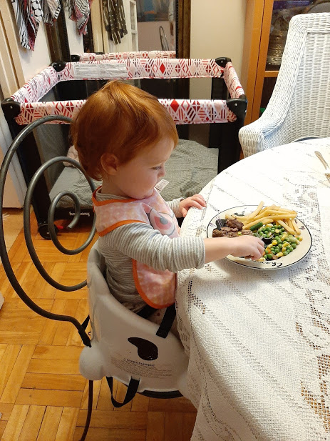 You still love your food and Bubby delights in you sounds of enjoyment – mmmmmm, mmmmmm, mmmmmm!!!! you love to show your delight with a little wiggle and a big smile and sounds of enjoyment!!!!! You had clementines this month and you really love them. You love fresh fruit and Bubby finds it fun to follow the seasons and introduce you to new ones. Other favourite foods? Eggs (omelettes, hard boiled, fried or poached), cheese ( cheddar or marble slices, herb and garlic creamed cheese, feta and cottage cheese), oatmeal porridge, muffins (pumpkin, almond, and the cornmeal ones that Auntie Paula makes for you, peanut butter sandwiches, You and I were both crazy for some chocolate cookies I made with bananas and almond flour! Yummm. You were having none of the sauerkraut I had you taste and this week you didn’t like shredded raw carrots but you loved the carrots in the chicken soup with matzoh balls. You eat your broccoli and you love sweet potatoes and peas.