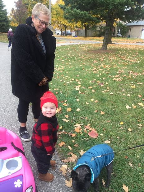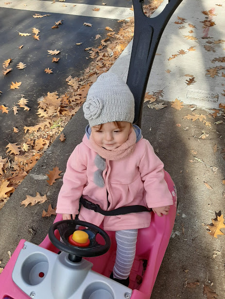 There is a still a pandemic and we don’t get to go to places like libraries, community centres or have play dates with friends but we are still having a lot of fun. This past week we went to Riverdale Farm where we saw some different animals. We also had a visit with Aunt Paula and we had a walk in the park with Kenana. On Wednesdays now you go to Grandma’s for dinner and you have your bath there too.