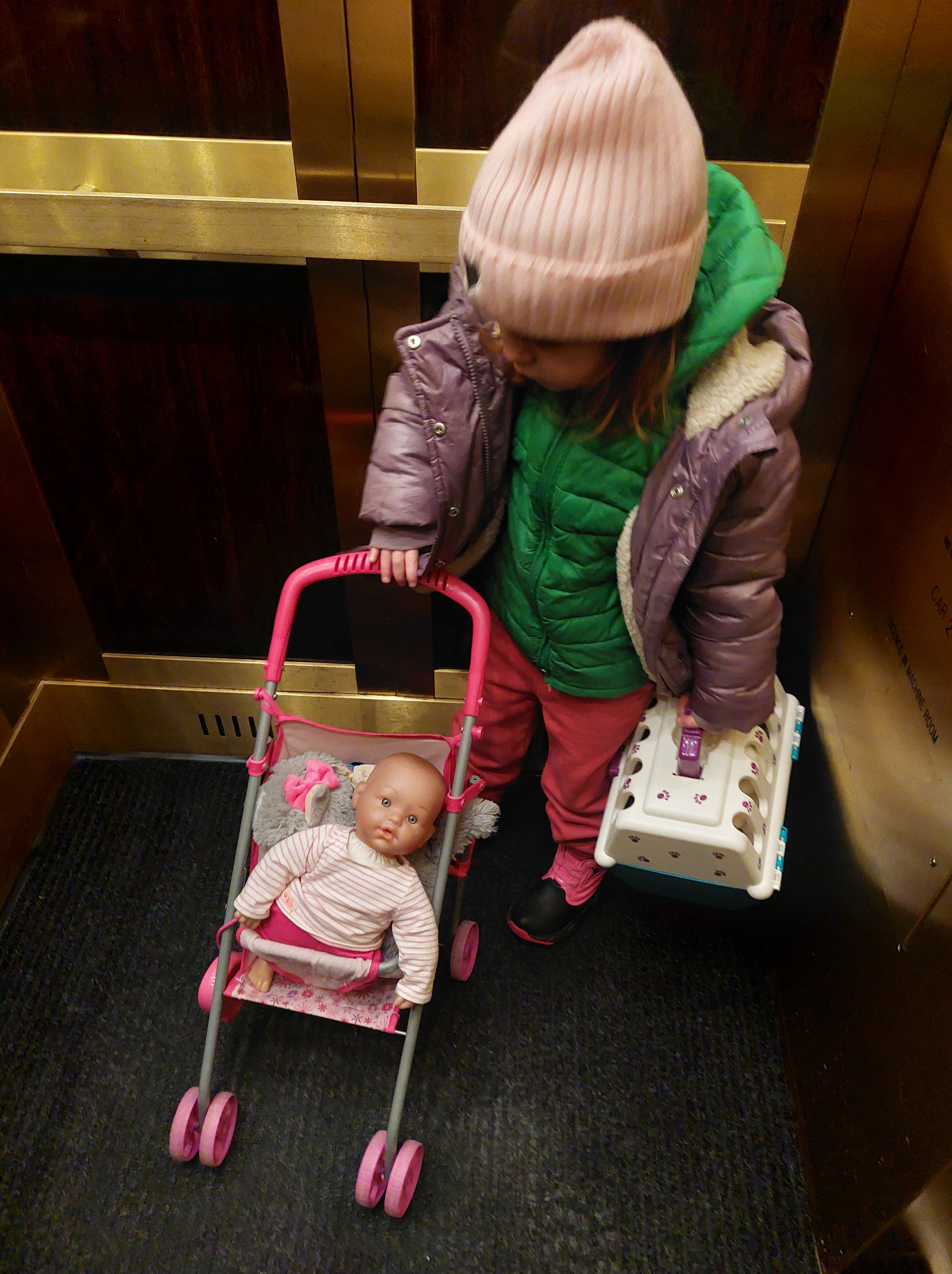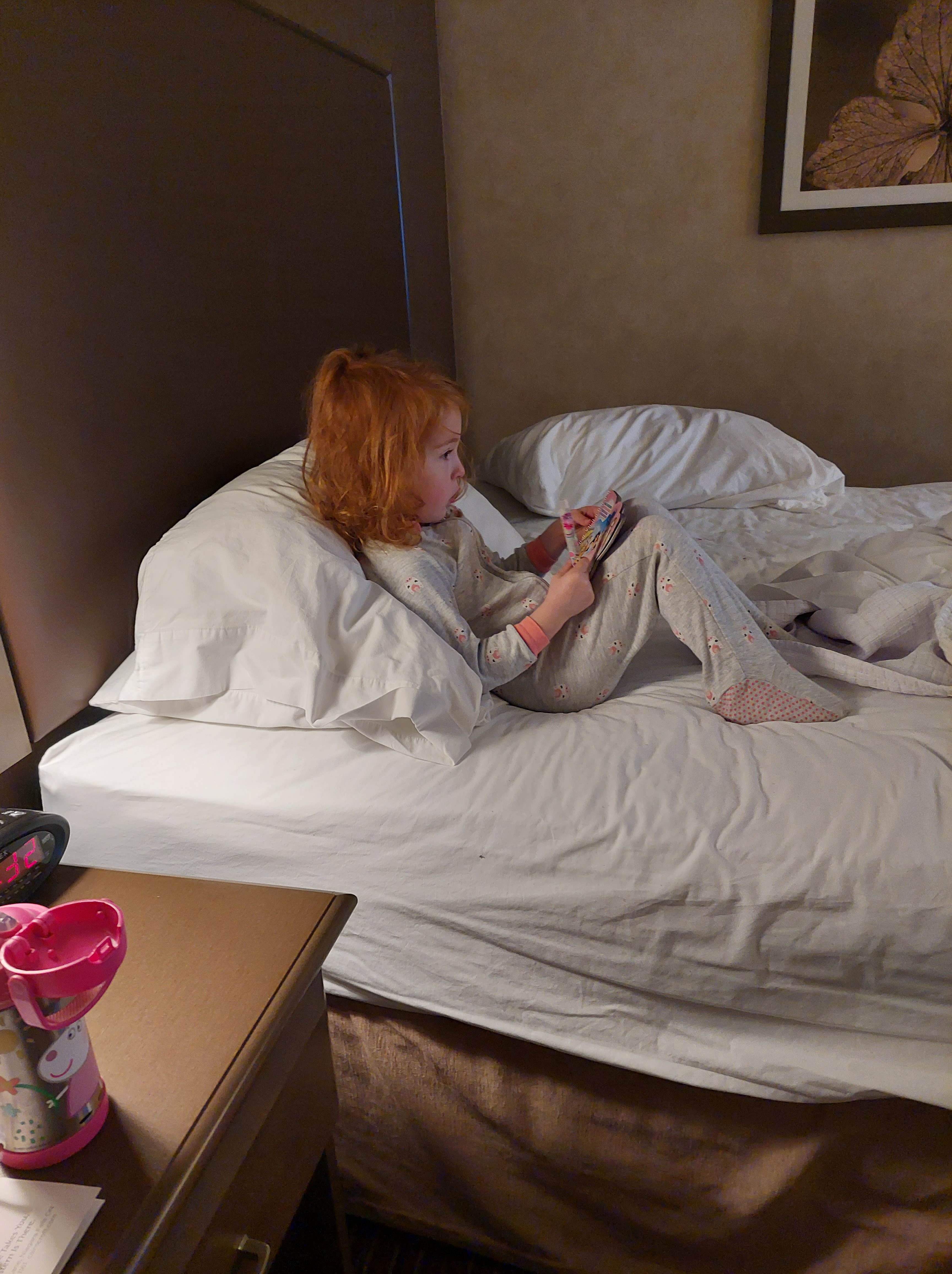 In February, we had a little getaway. We went to Burlington by Go Train for a night and stayed at the Burlington Waterfront Hotel. Auntie Raya visited us for a few hours. We swam, went to the nearby playground, walked along the waterfront and ate in the restaurant. Like your Mommy, your Auntie and me – you love a hotel vacation.